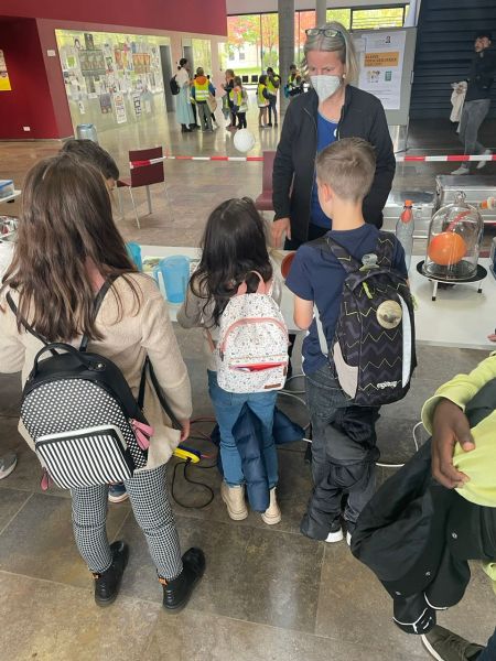 Die Vorlesung war sehr komplex gestaltet, leider nicht so kindgerecht wie sonst, aber die 4a hat Ihr Bestes gegeben dem Professor zu folgen. Es schafften alle Kinder, das Quiz zu lösen und nehmen somit an einer großen Verlosung teil. Nach der Vorlesung trafen wir auf einige Mitarbeiter der Experimenta, die mit den Kindern noch ein paar kleine Versuche durchführten. Danach ging es für die kleinen Studenten wieder mit U-Bahn und S-Bahn zurück nach Steinheim zur Schule.