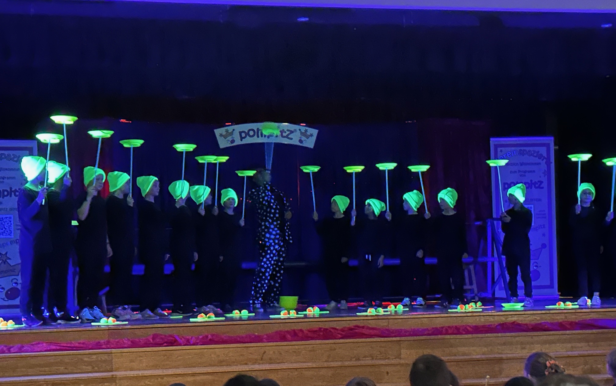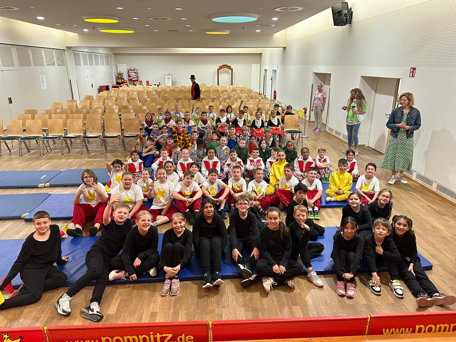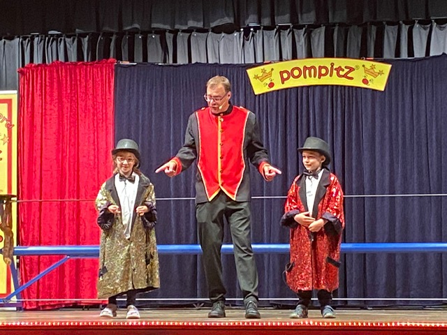 In der Woche, 17.-21-06.24, fand an unserer Schule zum zweiten Mal, eine Zirkusprojektwoche mit dem Zirkus Pompitz statt. Die Kinder konnten sich in verschiedene Zirkusrollen einwählen. So waren die Bodenakrobaten, Artisten oder Jongleure genauso gefragt wie die zaubernden Clowns. Ob auf der Laufkugel, dem Drahtseil, bei der Tellerjonglage, dem Bauen von Menschenpyramiden oder dem Zaubern, die Kinder lernten Einblicke in die Künste des Zirkusakteure.